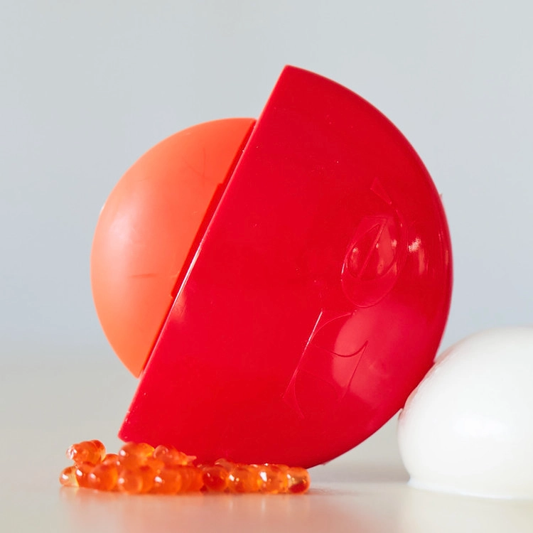 제품의 뚜껑을 화살표 방향으로 살짝 돌려서 오픈합니다. 오렌지색 부분의 입구를 손등에 두드린 후, 용기의 중앙부를 눌러서 사용하세요.